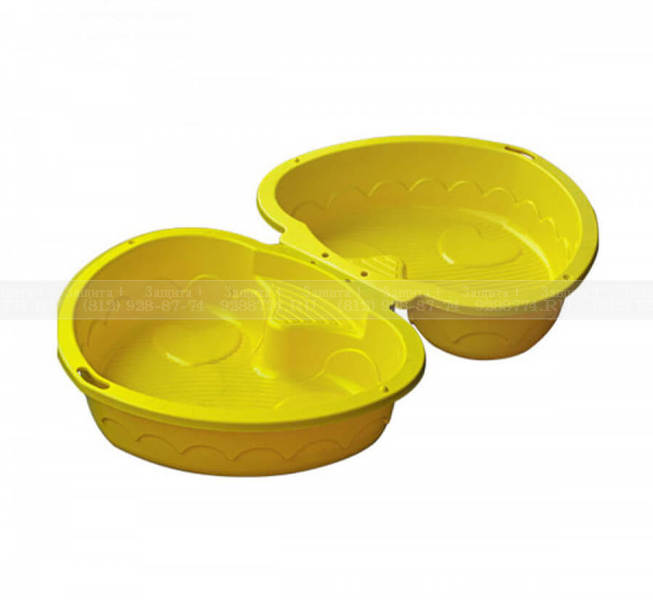 Детская пластиковая песочница мини-басейн "Сердечко двойное" (Marian Plast 435) удобна как для игры на улице, так и в закрытом помещении. Одну из частей песочницы можно использовать в качестве крышки, которая защитит песочницу от домашних животных, попадания песка и листьев. В песочнице есть 2 сиденья и Ваш малыш сможет не только играть в песок, но и поплескаться в воде со своими друзьями. Песочница изготовлена из прочного, нетоксичного, гипоаллергенного пластика и сертифицирована в РФ. Песочница состоит из 2-ух частей, что позволяет закрывать ее от дождя.