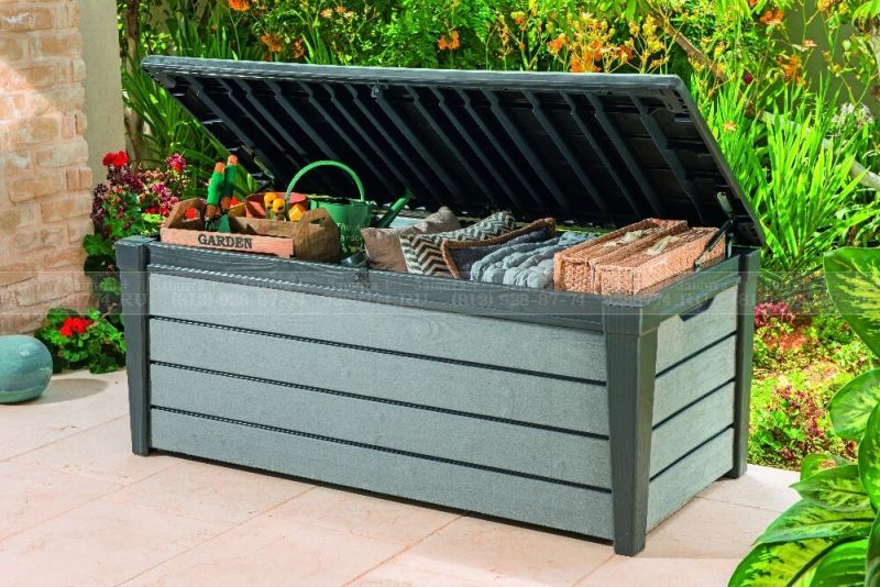Контейнер в 3 возможных цветах для уличного или домашнего хранения вещей, подушек, одеял, садового инвентаря, инструмента и прочего. Изготовлен из экологичного сырья - прочного, надежного пластика с добавлением в структуру анти-УФ защиты от выгорания и разрушения под воздействием атмосферных осадков и низких температур.